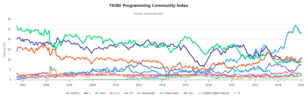 TIOBEインデックスで見る2026年1月のプログラミング言語人気ランキング