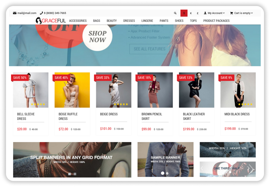 ECサイト上のアニメーション要素は、ユーザーに喜ばれるでしょう。様々なECサイト要素、バナー、商品スクロールバーなど、自由にお使いください。