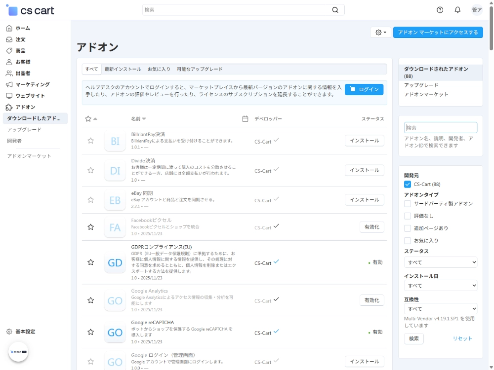 CS-Cart 国際版(公式)は、追加のプラグイン開発やカスタマイズを必要とせず、必要な機能の多くを標準状態で提供します。