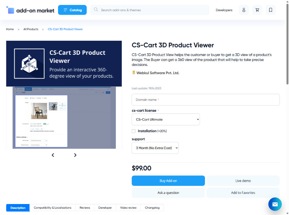 360°製品ビューアー(CS-Cart 3D Product Viewer)