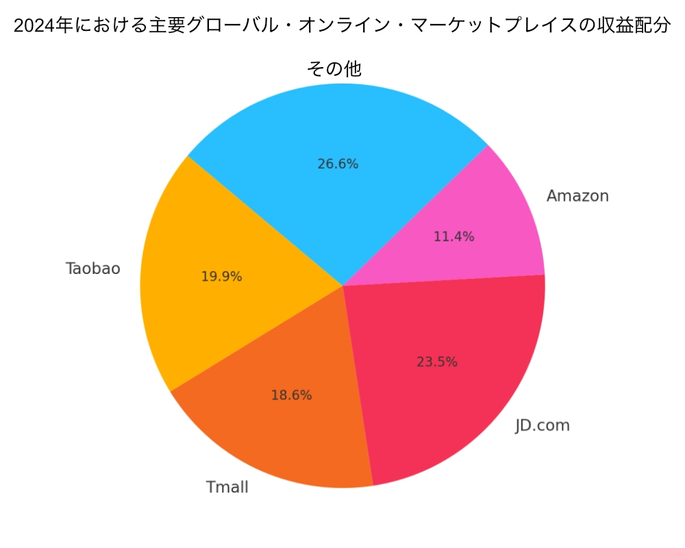 - 米国のマーケットプレイスである Amazonは世界第3位にランクされ、2023年のサードパーティ売上は推定4,357億ドル(65.3兆円)でした。