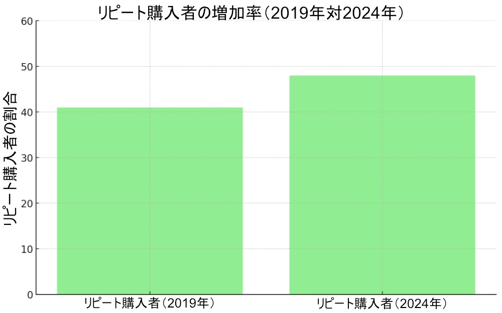 - リピート購入者比率:複数回購入する購入者の割合を測定し、お客様のロイヤルティの高さと満足度を示します。