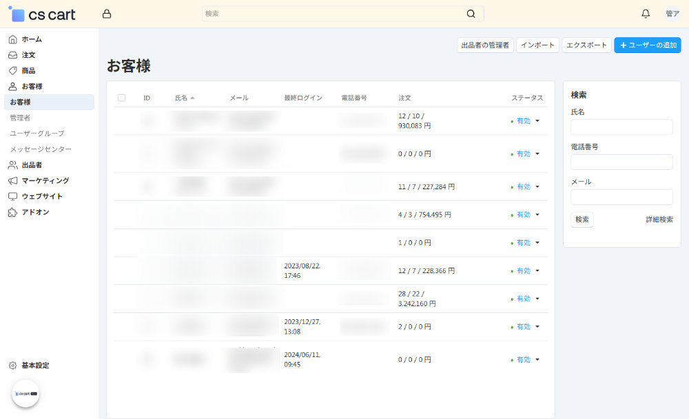 CS-Cartには、充実した顧客管理機能も用意されています。