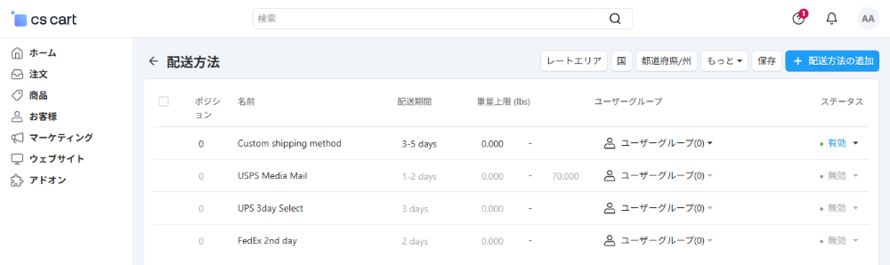 CS-Cartでは、クライアントから提供された情報を使う事で、リアルタイムでサーバ上で自動的に配送料の計算を行う事ができます。