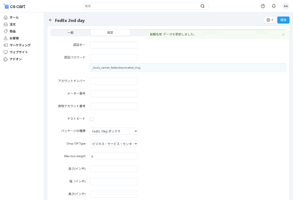 FedExから取得した以下の情報を入力します。
