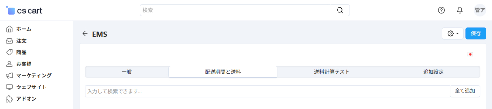 次に、配送方法にEMS(国際スピード郵便)を追加します。
