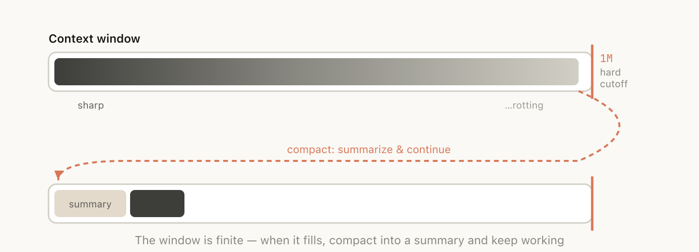 これは特に難しい問題です。なぜなら、コンテキストの劣化により、モデルは圧縮時に最も知能が低い状態になるからです。コンテキストが100万トークンある現在は、自動圧縮を待つのではなく、次に何をしたいかを説明した上で能動的に /compact を実行する時間を確保できます。